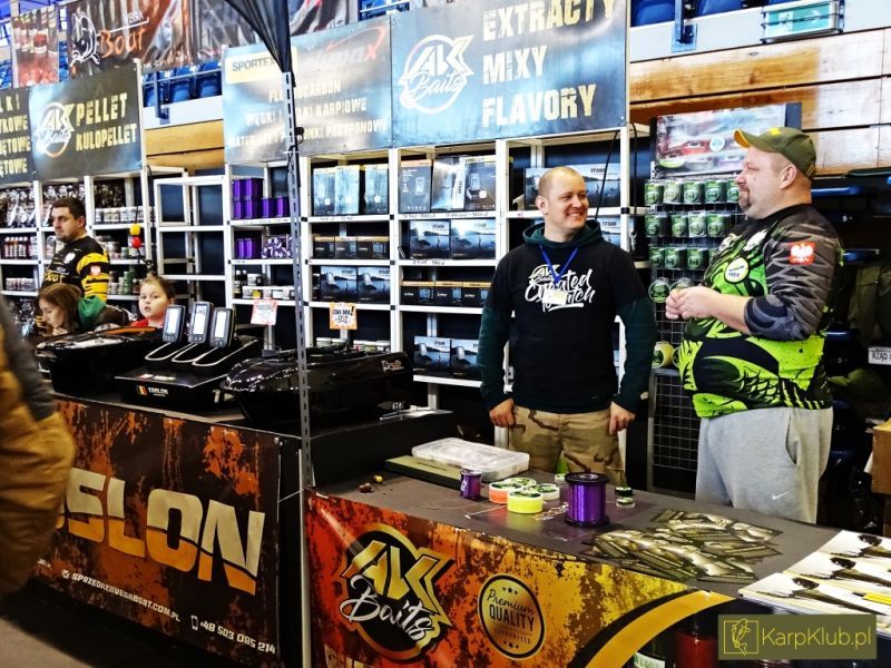 Organizator starał się jak mógł, by umilić weekend zwiedzającym klientom. Nie było stanowisk lepszych czy gorszych, bo każdy wystawca włożył dużo wysiłku, żeby zainteresować wędkarzy. Sporo było wyprzedaży, trochę nowości i kilka, moim zdaniem perełek, mianowicie: haczykowe orzeszki tygrysie z Carp Old School’a. W przyszłości planowane są także gotowe orzechy w większej ilości. Kolejną perełką są Method mixy z Feeder Bait, które pozwoliły zająć 3 miejsce na mistrzostwach Świata w Portugalii w 2019 roku. Z kolei na stanowisku Sklepu Trotka można było porozmawiać i zrobić sobie zdjęcie z Panią Anitą Retmańską, która w ubiegłym roku ustanowiła Rekord Polski złowionego karpia pełnołuskiego 31,850kg(!).