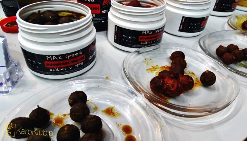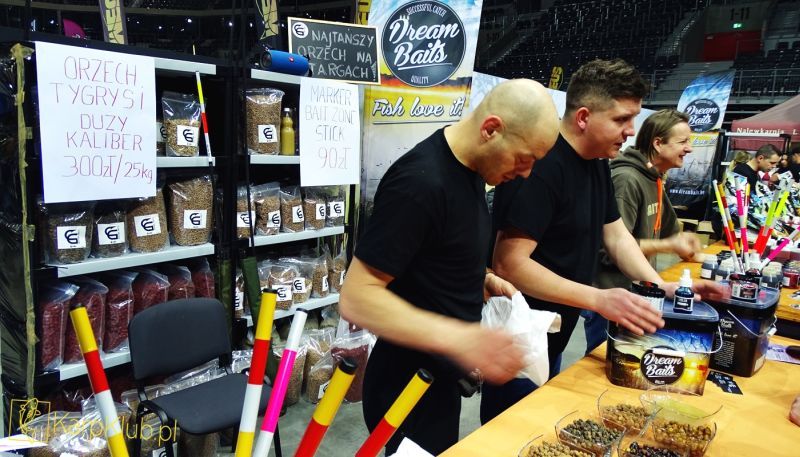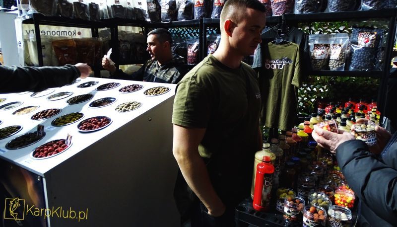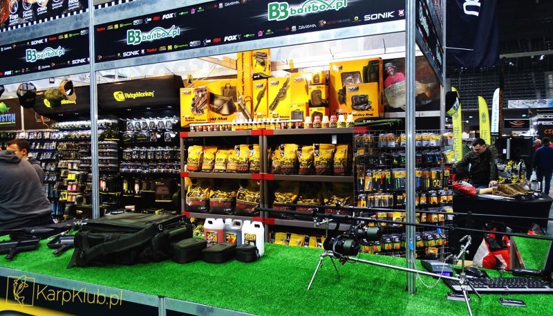 Absolutnym liderem pod względem wielkości stanowiska oraz ilości firm w swojej ofercie bezapelacyjnie sklep BaitBox. Profesjonalna obsługa na: CC Moore, Ridge Monkey, Sonik, Carp Old School, Carp R’us, Fox, Kryston, Korda, Solar, Mivardi, Nash, Jochym Marine, Sportex, Shimano, Jag. Naprawdę sporo towaru, dużo promocji, pokazy, prezentacje czyli to czego oczekiwali klienci. Drugi pod względem wielkości i asortymentu sklep Zoomixmarket. Firmy : Mika, Fox, Savage Gear, Mikado, Okuma, Daiwa i wiele wiecej. Najmocniej pachnące stanowisko na targach to AKB, świeżutkie kuleczki i pellety skutecznie przyciągały klientów. Najlepsze materiały przyponowe, tworzone na bieżąco z produktów PB tylko na stanowisku NG24. Nowiutkie designerskie sygnalizatory to Neco. Wszystkie możliwe pontony oraz silniki na Tokarex oraz Nawi Poland. Spore oblężenie swoich stanowisk przeżywały nowe firmy na rynku. Mowa o No Respect i Dream Baits. Duże zainteresowanie klienteli na GP Baits i Meus. Nowość na Bandit Carp –seria Killer Spice, cztery obłędne zapachy –Petarda. Najlepsze łódki zdalnie sterowane Viking Boat i Prolam. Kompletna oferta Anacondy, Stalomaxa oraz przepiękny, dopracowany rod pod z nierdzewki firmy Fil tylko w Rybce. Czeskie dobrze znane w Polsce produkty spożywcze o znakomitej jakości Carp Service Vaclavik oraz Max Carp. Obsługa na tych stanowiskach miała pełne ręce roboty. Na targach znalazły się także dwie perełki, jedna o tematyce spożywczej, druga sprzętowej o nietuzinkowych rozwiązaniach. Pierwsza to G.F. Baits – czeski producent kulek proteinowych, pelletów czy past w tak śmiesznych kwotach, że klienci przecierali oczy czy rzeczywiście taka niska cena. Druga perełka to asortyment angielskiej Wychwood w sklepie Trotka. Nowatorskie rozwiązania, świetny desing w przystępnej cenie – godne polecenia.